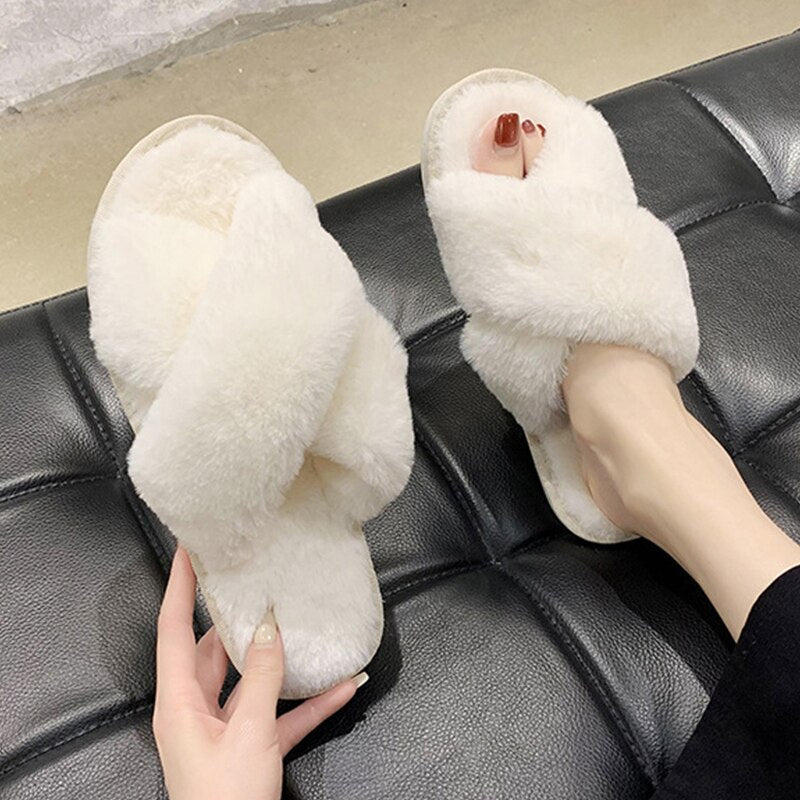 AnyStep Cross White Fluffy Indoor Slip On Plush Slipper One Size 5-6